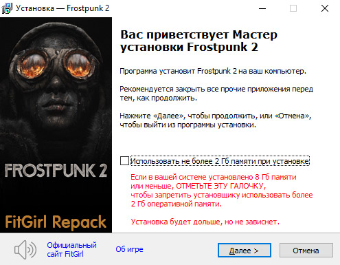 - Для установки репака требуется минимум 2 Гб свободной оперативной памяти (включая виртуальную)