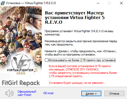 - Для установки репака требуется минимум 2 Гб свободной оперативной памяти (включая виртуальную)