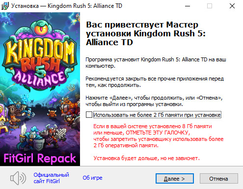 - Репак основан на ISO-образе Kingdom.Rush.5.Alliance.TD.Wukongs.Journey.Campaign-TENOKE: tenoke-kingdom.rush.5.alliance.td.wukongs.journey.campaign.iso (1,441,200,128 байт)
