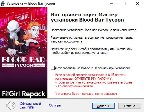 - Репак основан на ISO-образе Blood.Bar.Tycoon.v1.1.107761-TENOKE: tenoke-blood.bar.tycoon.v1.1.107761.iso (4,053,712,896 байт)