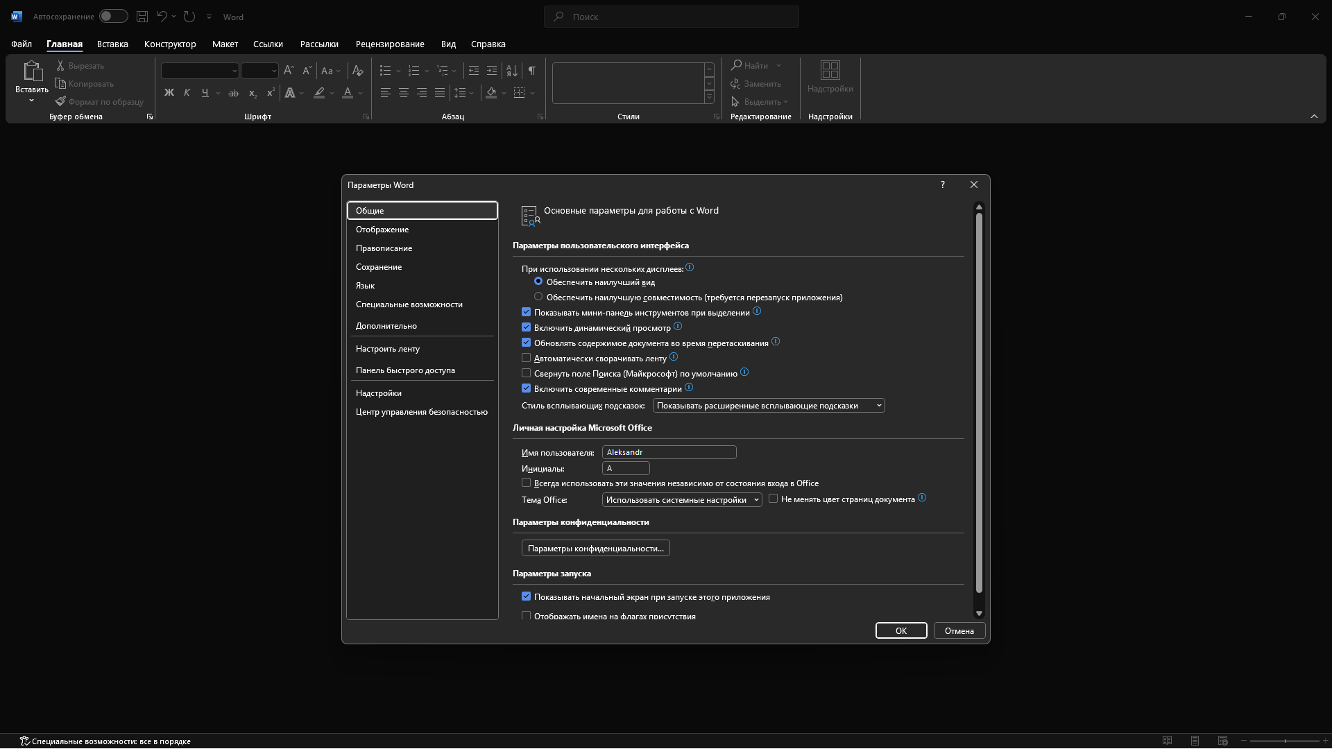Установка Standard с приложением WORD