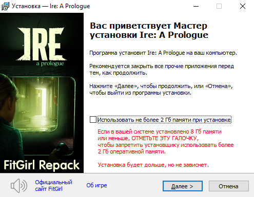 - Для установки репака требуется минимум 2 Гб свободной оперативной памяти (включая виртуальную)
