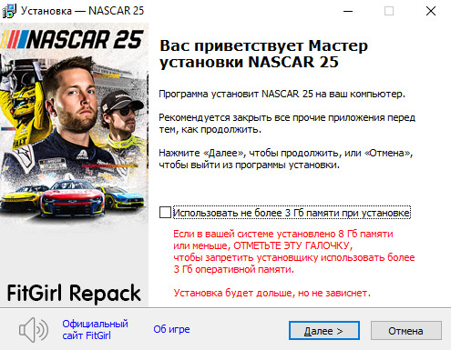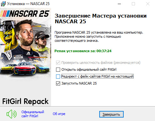 - Репак основан на ISO-образе NASCAR.25-RUNE: rune-nascar.25.iso (43,518,296,064 байта)