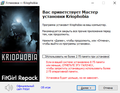 - Для установки репака требуется минимум 2 Гб свободной оперативной памяти (включая виртуальную)