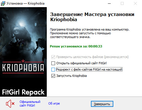 - После установки доступна опция проверки контрольных сумм всех файлов, чтобы убедиться, что репак установился нормально