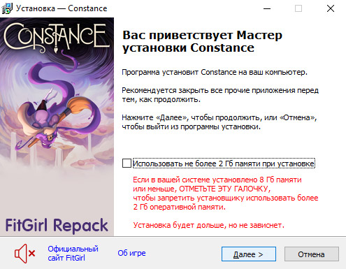 • Репак основан на ISO-образе Constance-TENOKE: tenoke-constance.iso (1,640,148,992 байта)