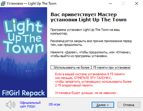 - Репак основан на ISO-образе Light.Up.The.Town-TENOKE: tenoke-light.up.the.town.iso (9,926,723,584 байта)