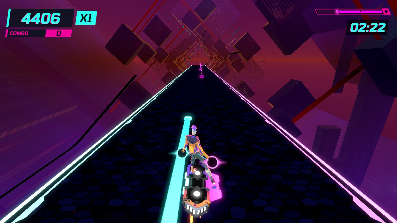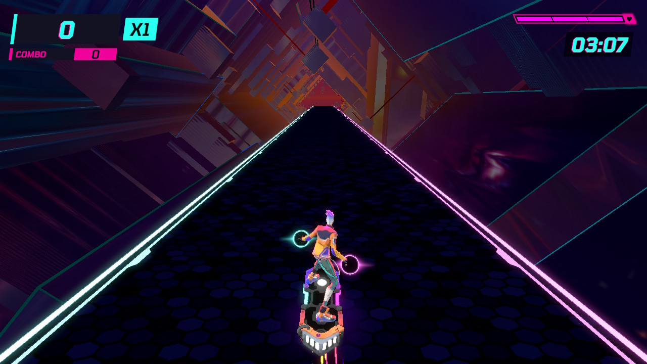 отправляйтесь в захватывающее музыкальное приключение в стиле киберпанк, где вам предстоит ловить ноты, уворачиваться от препятствий и мчаться по неоновым рельсам в такт музыке. Берите свой ховерборд и выполняйте головокружительные трюки в воздухе на фоне ретрофутуристических городских пейзажей!