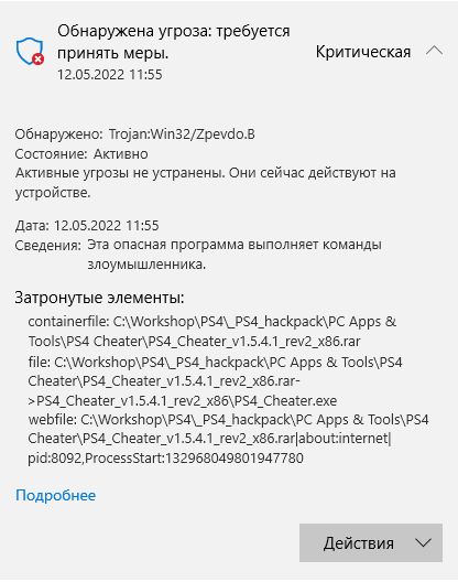 Программа с открытым исходным кодом лежит на гитхабе (правда там уже есть более новая версия, я её не обновлял - не уверен пока, что надо или нет), согласно вирус тотал ругаются на файл не так много антивирусов и каждый по своему, кто-то что не безопасный, кто то говорит траян. Может дело в том, что прога сует свои ручки куда-то куда не понравилось тем антивирусникам (прога нужна для поиска новых читов)... Кто знает. П.С. На новой версии по прежнему ругается не большая часть антивирий и на то же самое - вирус тотал. П.П.С. Впрочем могу изъять 32-х битную версию программы из раздачи. Если не нужна пишите в коментах - уберу. П.П.П.С. К 64 битной смотрю претензий нет.