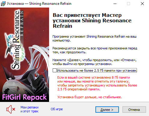 - Для установки репака требуется минимум 2.5 Гб свободной оперативной памяти (включая виртуальную)