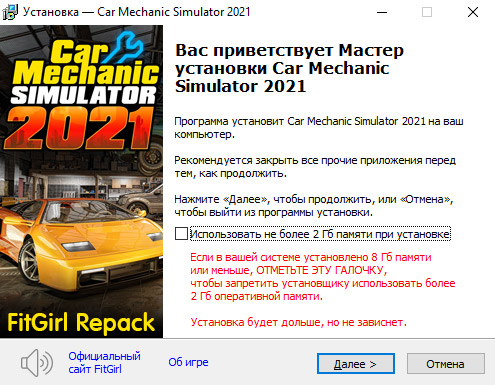 - Для установки репака требуется минимум 2 Гб свободной оперативной памяти (включая виртуальную)