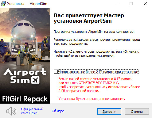 - Для установки репака требуется минимум 2 Гб свободной оперативной памяти (включая виртуальную)