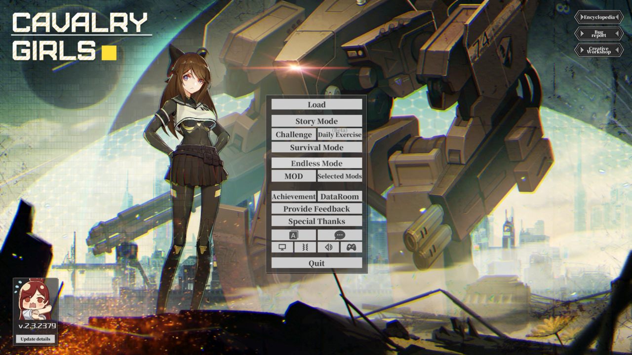 - Казуальная часть: Можно набрать пять различных персонажей, выбрать любимую девушку-меха, которая будет сопровождать вас в бою. Украшайте уютное общежитие и дарите девушкам подарки.