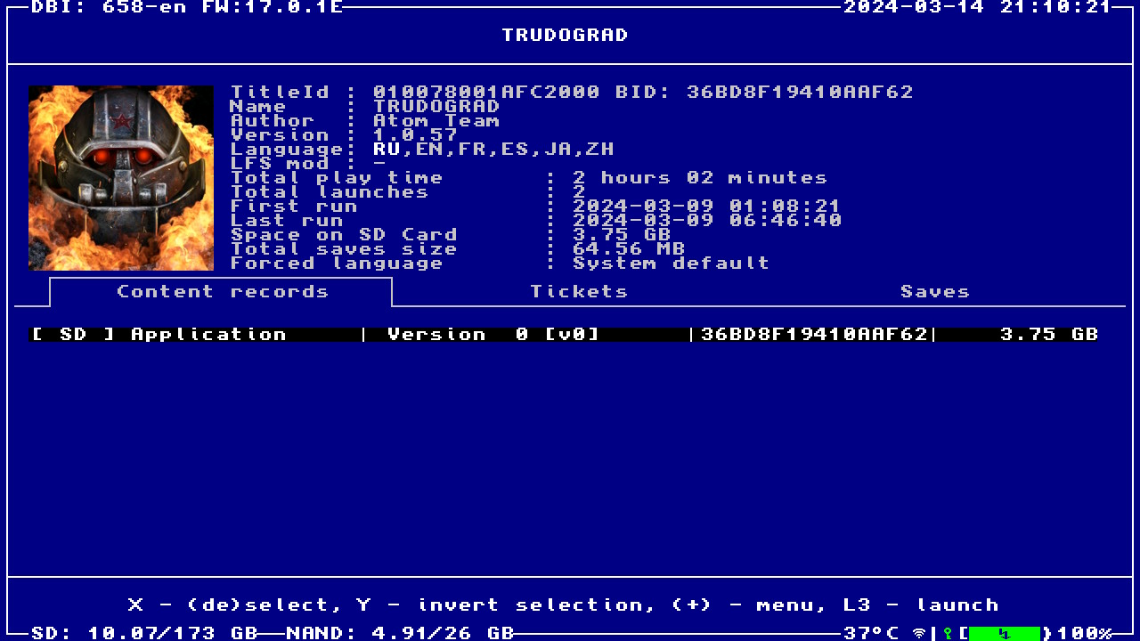 Формат образа: .NSZ (сжато ~6%, установленный объём 3.75 ГБ)