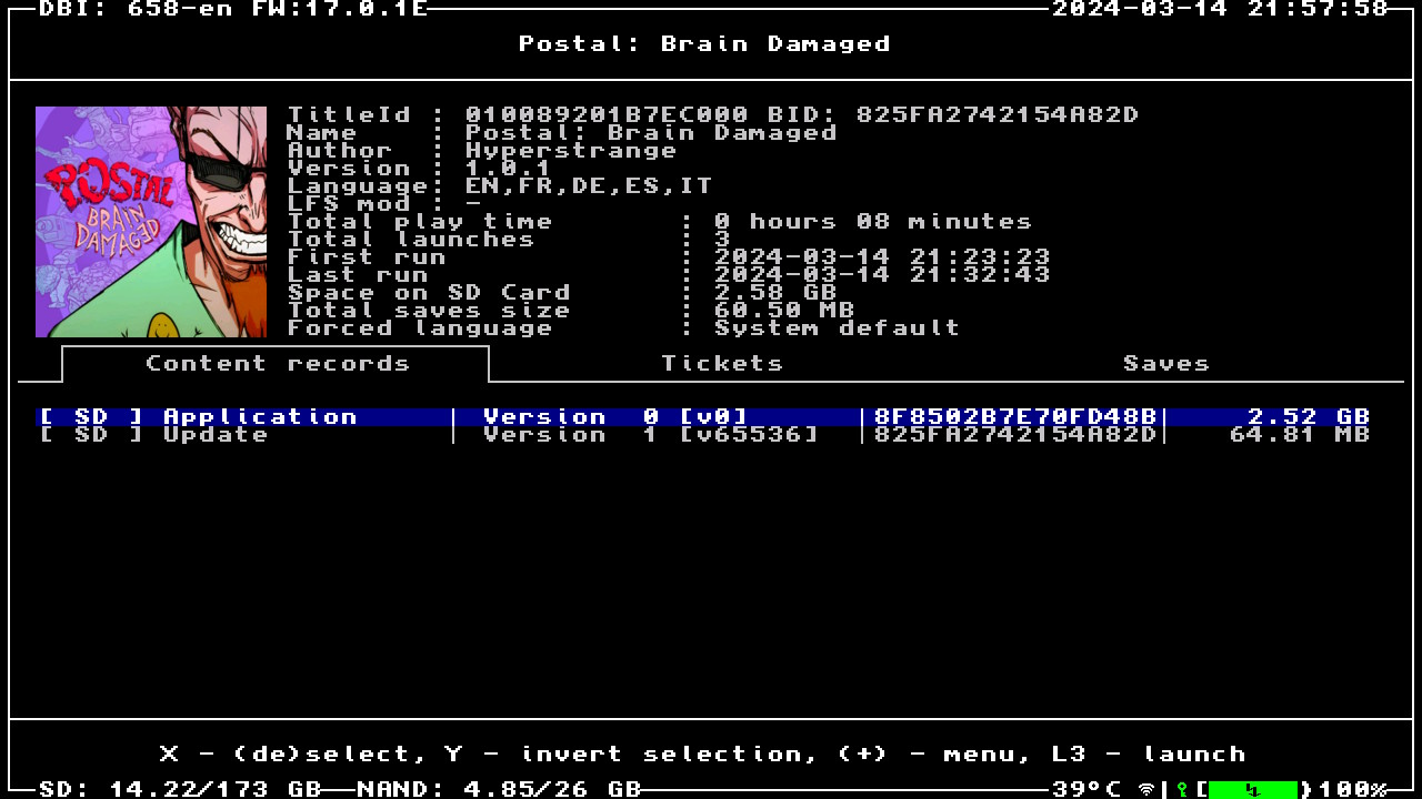 Формат образа: .NSZ (сжато ~12%, установленный объём 2.58 ГБ)