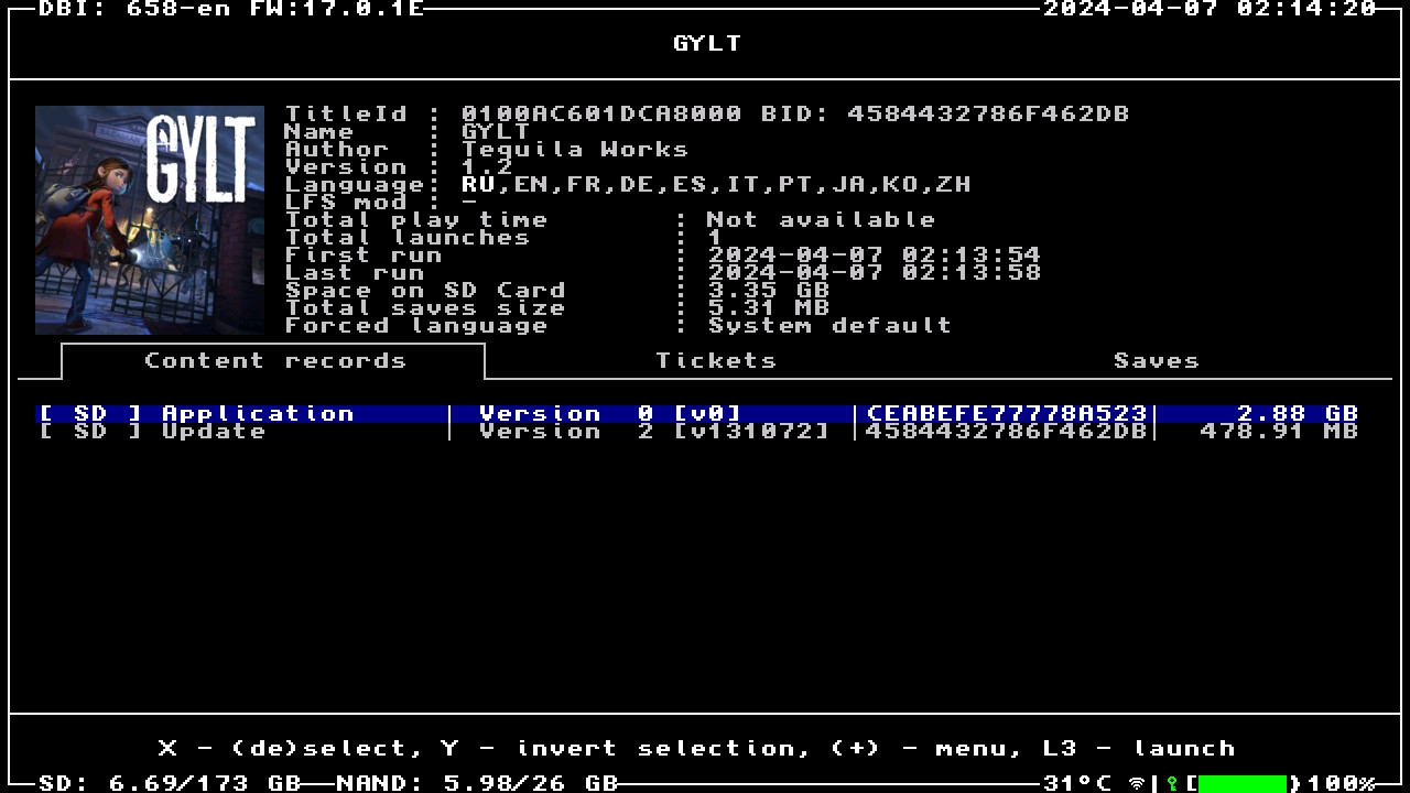 Формат образа: .NSZ (сжато ~9%, установленный объём 3.35 ГБ)