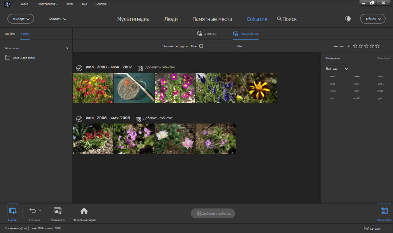 - Быстрый интеллектуальный поиск видео по тегам Вашим видео автоматически присваиваются теги в зависимости от изображенных объектов, таких как закаты, дни рождения, собаки, кошки и т. д. Эта функция реализована на основе технологии искусственного интеллекта Adobe Sensei.
