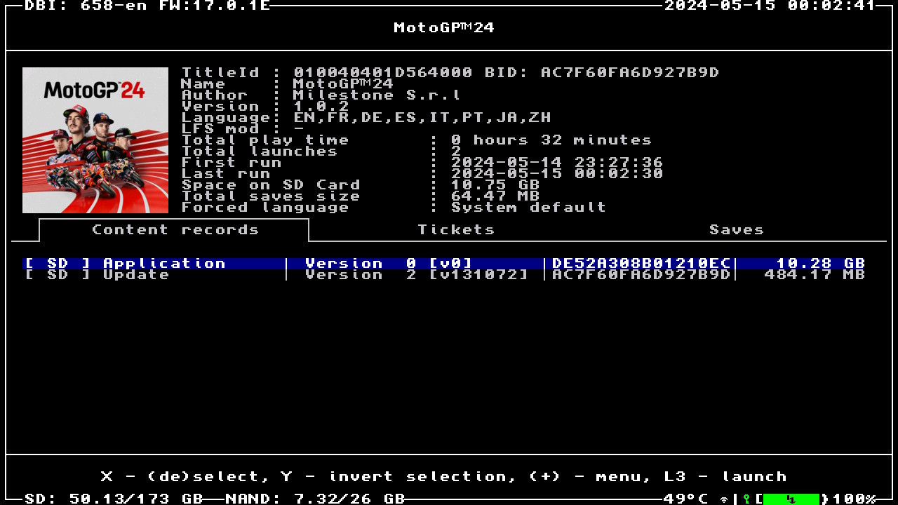 Формат образа: .NSZ (сжато ~4%, установленный объём 10.75 ГБ)