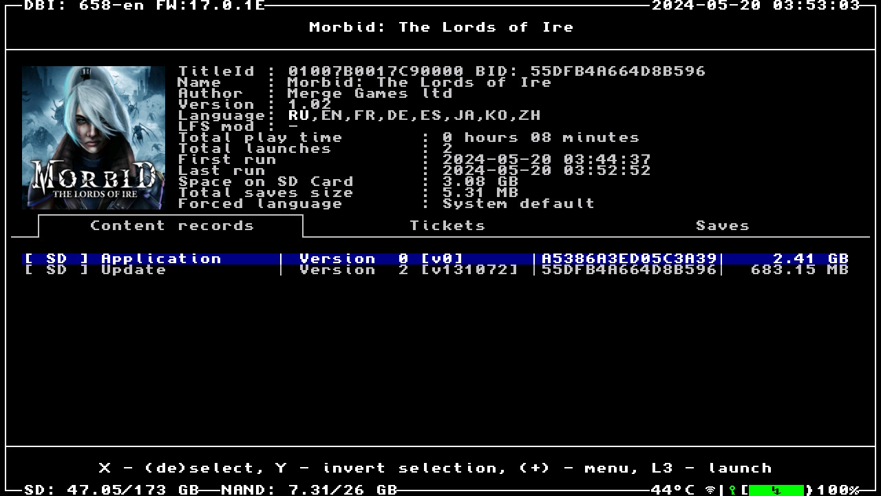 Формат образа: .NSZ (сжато ~7%, установленный объём 3.08 ГБ)