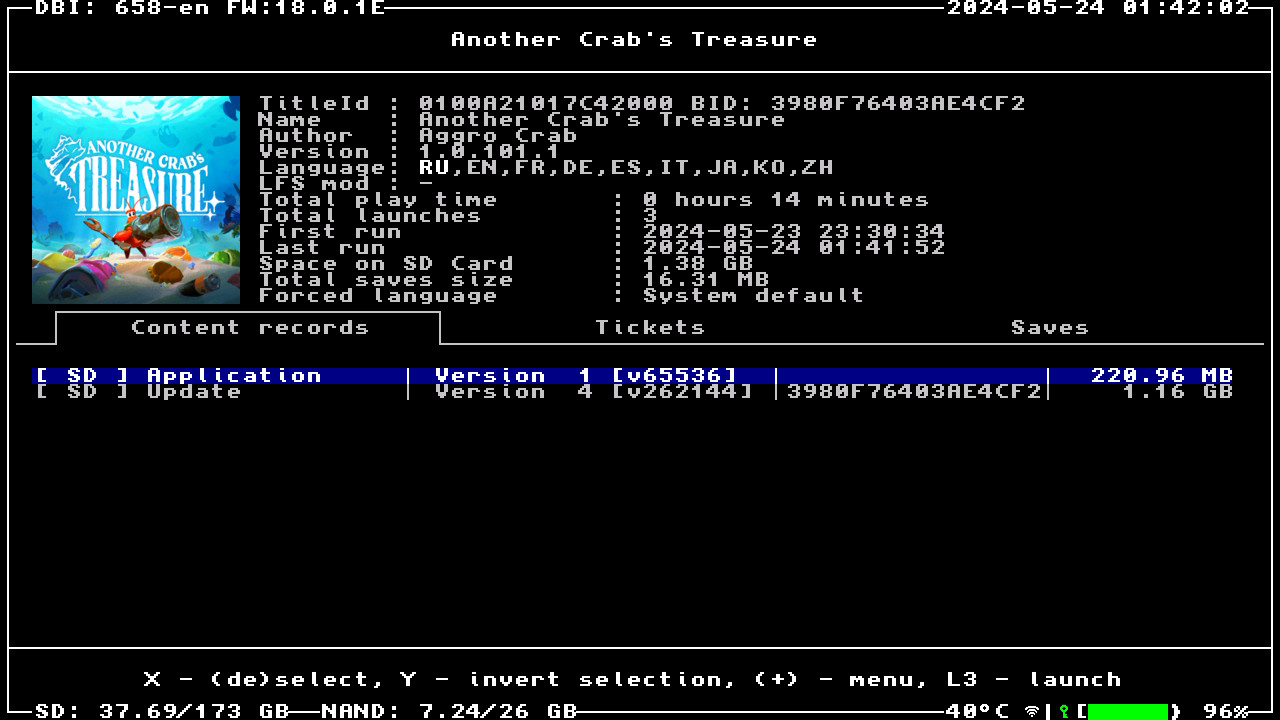 Формат образа: .NSZ (сжато ~10%, установленный объём 1.38 ГБ)