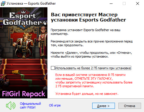 - Для установки репака требуется минимум 2 Гб свободной оперативной памяти (включая виртуальную)