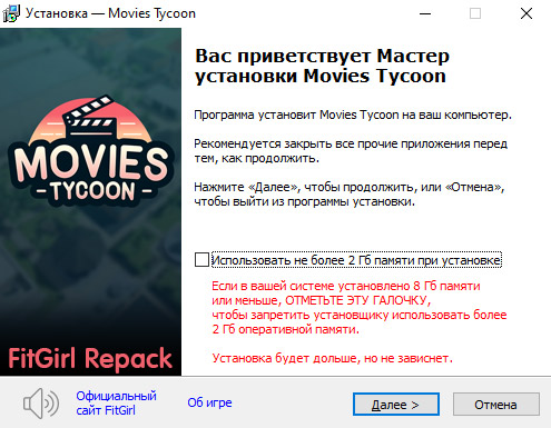 - Для установки репака требуется минимум 2 Гб свободной оперативной памяти (включая виртуальную)