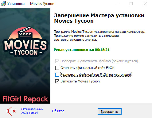 - Репак основан на ISO-образе Movies.Tycoon.Thrills.and.Spectacles-TENOKE: tenoke-movies.tycoon.thrills.and.spectacles.iso (21,161,377,792 байта)