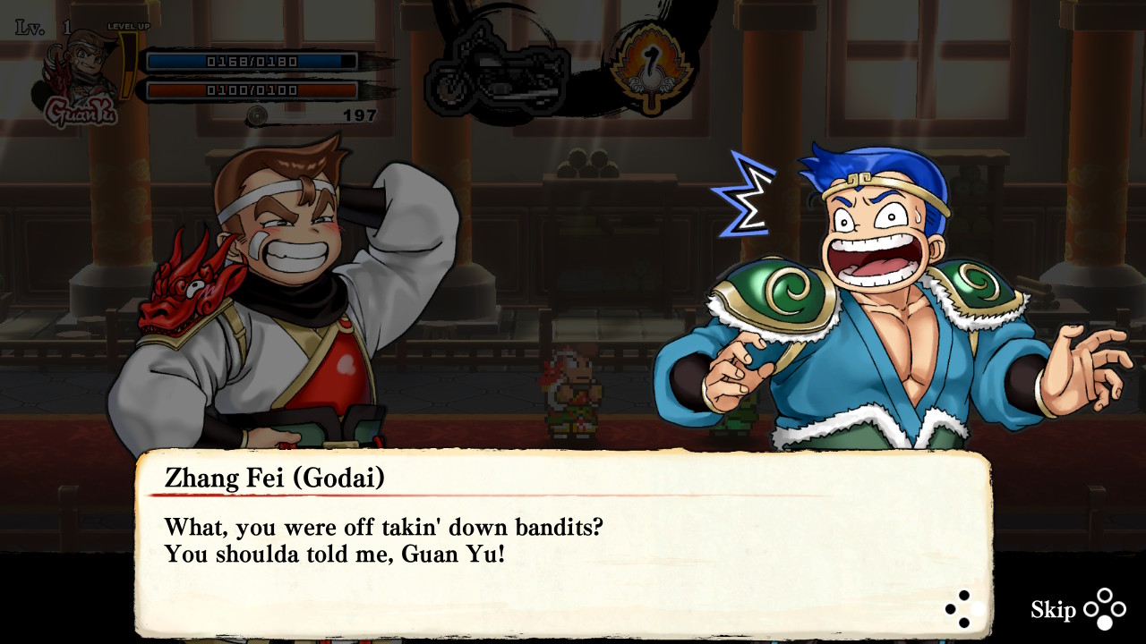 Описание: В River City Saga: Three Kingdoms наш любимый герой Кунио в роли Гуань Юя путешествовал по воюющим государствам феодального Китая. Сюжет начинается с событий, роизошедших после битвы у Красных скал, и продолжается до тех пор, пока не достигнет своей исторической кульминации в битве на равнинах Учжан. В общей сложности в игре участвуют 100 уникальных персонажей из Ривер-Сити, поэтому сюжет не закончится без сумасшедшего комического поворота.