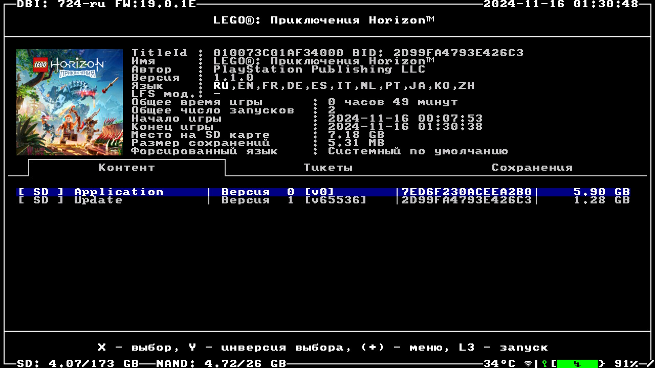 Формат образа: NSZ (сжато ~8%, установленный объём 7.18 ГБ)