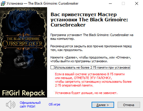 • Для установки репака требуется минимум 2 Гб свободной оперативной памяти (включая виртуальную)