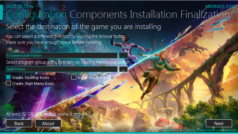 Преодолевайте все возникающие на вашем пути препятствия вместе с партнером За основу взят релиз от RUNE (Split.Fiction-RUNE) - CreamAPI fix, thanks to amixonee Версия игры: v5.4.4.0 DLC: 3050960=Split Fiction Full Game НИЧЕГО не вырезано, НИЧЕГО не перекодировано Время установки: 5 - 20 минут Repack от DjDI 1- Запустите программу установки от имени администратора 2- Нажмите на страницу 3- Нажмите стрелку вверх на клавиатуре 4- Нажмите Установить 5- Нажмите Продолжить 6- Выберите пункт назначения установки 7- Нажмите Далее 8- Выберите компонент 9- Установить