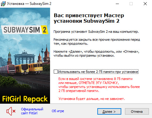 - Для установки репака требуется минимум 2 Гб свободной оперативной памяти (включая виртуальную)