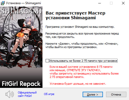 - Для установки репака требуется минимум 2 Гб свободной оперативной памяти (включая виртуальную)