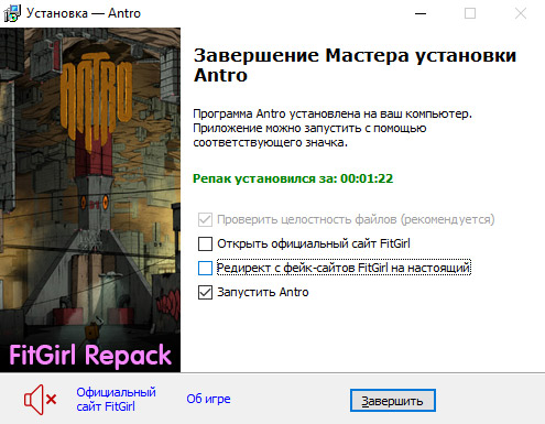 - После установки доступна опция проверки контрольных сумм всех файлов, чтобы убедиться, что репак установился нормально