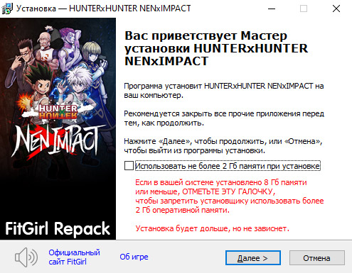 - Репак основан на ISO-образе HUNTER.HUNTER.NEN.IMPACT-TENOKE: tenoke-hunter.hunter.nen.impact.iso (2,270,287,872 байта)