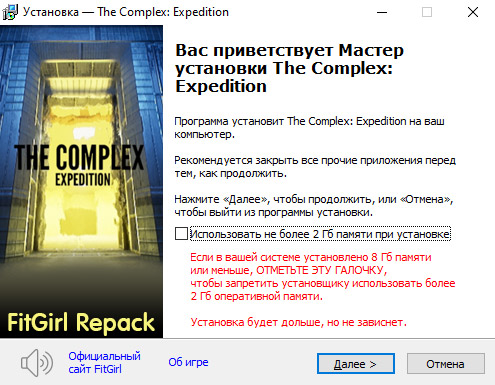 - Для установки репака требуется минимум 2 Гб свободной оперативной памяти (включая виртуальную)