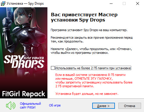 - Репак основан на ISO-образе Spy.Drops-TENOKE: tenoke-spy.drops.iso (2,286,671,872 байта)