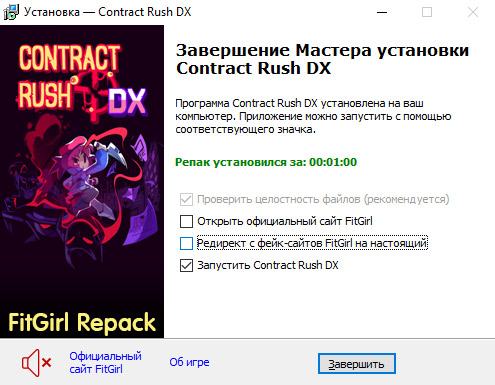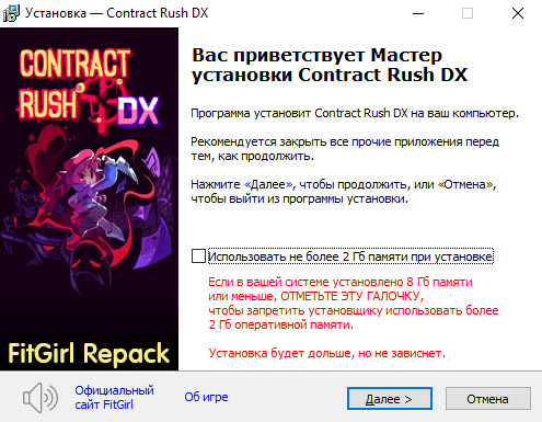 - Репак основан на ISO-образе Contract.Rush.DX-TENOKE: tenoke-contract.rush.dx.iso (1,790,801,920 байт)