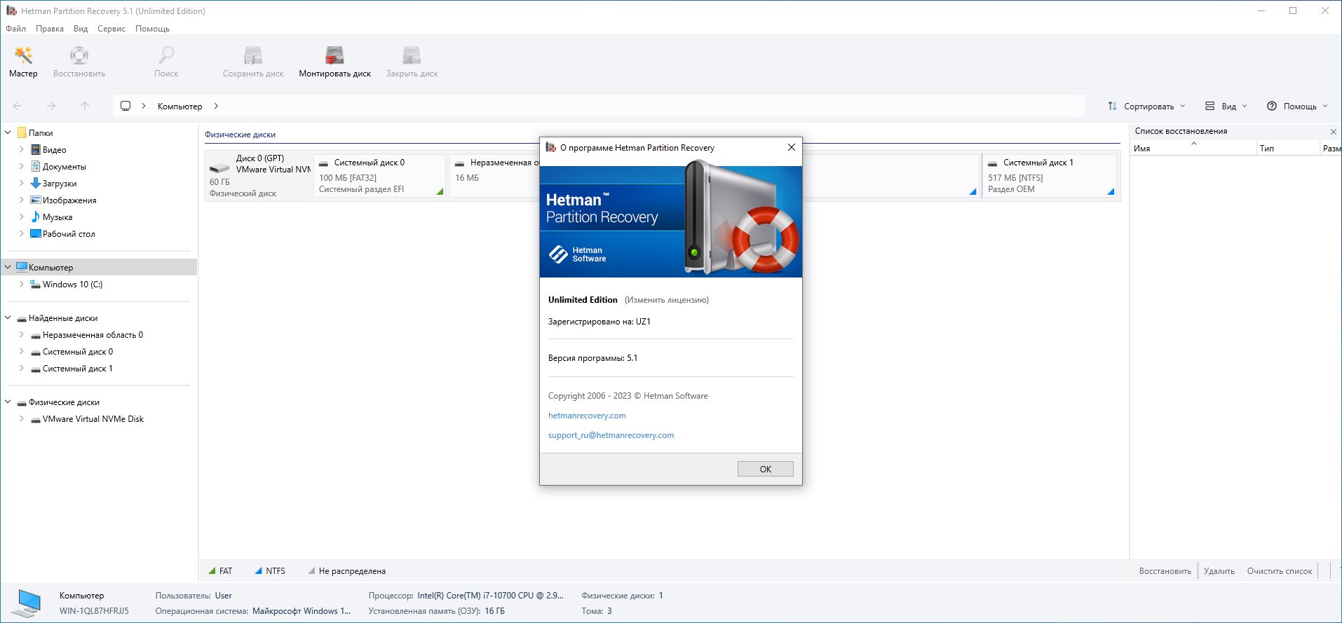 Partition Recovery™ работает с дисками виртуальных машин или виртуальными жесткими дисками. Вы сможете восстановить данные, утерянные при работе с виртуальной машиной (VMware Workstation, Oracle VirtualBox, Microsoft Hyper-V, и пр.), если виртуальная машина утратила работоспособность или виртуальный жесткий диск получил повреждения.