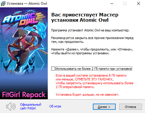 - Для установки репака требуется минимум 2 Гб свободной оперативной памяти (включая виртуальную)