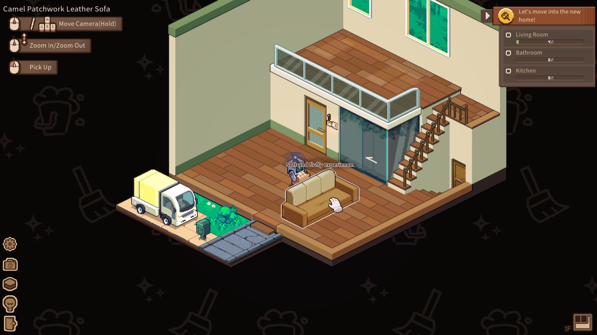 - РАБОТА ПО ПЕРЕЕЗДУ И УБОРКЕ - Для любителей уюта и порядка! Превращай захламлённые комнаты в тёплые, организованные уголки в умиротворяющем геймплее, полном деталей. Чашка у кровати, растение у окна, письма, покрытые пылью - всё найдёт своё «место» в твоих руках. Подметай забытые уголки, раскладывай каждую дорогую вещь и открывай тихие истории и следы жизни, спрятанные за каждым предметом, который ты расставляешь.