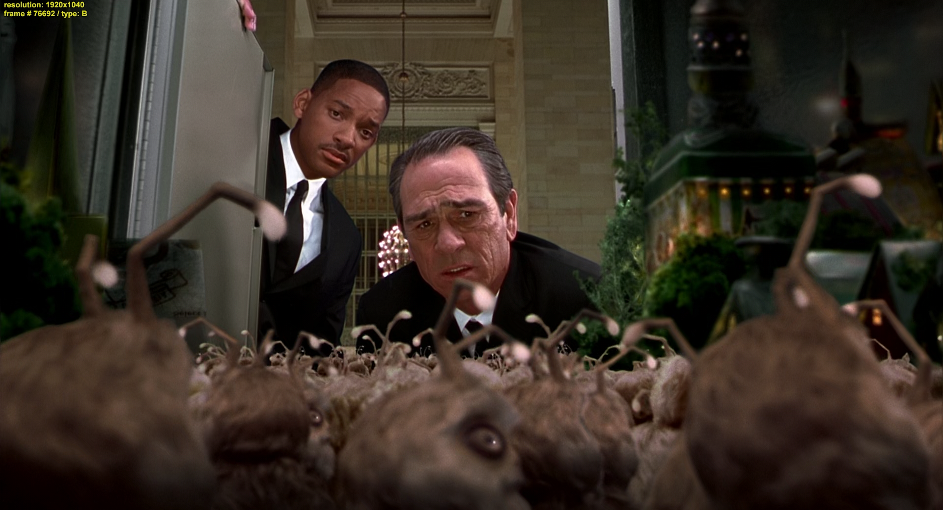 Производство: США / Amblin Entertainment, Columbia Pictures Corporation, MacDonald/Parkes Productions Жанр: фантастика, боевик, комедия, приключения Продолжительность: 01:37:58 Перевод: Дублированный | Мосфильм-Мастер Многоголосый | Карусель, DVD R5, Видеосервис Двухголосый | Garsu Pasaulis, Ульпаней Эльром Одноголосый | Живов, Гаврилов, Яроцкий, Ахметов, Антонов, Дольский Язык озвучки: русский, украинский, английский Субтитры: русские, украинские, английские Режиссёр: Барри Зонненфельд Актёры: Томми Ли Джонс, Уилл Смит, Линда Фиорентино, Винсент Д’Онофрио, Рип Торн, Тони Шэлуб, Шиван Фэллон, Майк Нуссбаум, Джон Грайз, Серхио Кальдерон Описание: Они - самый большой секрет Земли. Они работают на неофициальное правительственное агентство, регулирующее деятельность инопланетян на Земле. Они - это лучшая, последняя и единственная линия защиты Земли от отбросов вселенной. Их работа секретна, их оружие совершенно, им нет равных, они не оставляют следов. Они - это Люди в чёрном. | | Качество видео: BDRip 1080p [Mastered in 4K] Видео: HEVC/H.265, 1920x1040, ~11.5 Mbps Аудио01: AC3, 6 ch, 640 Kbps | Мосфильм-Мастер / UHD Blu-Ray Аудио02: AC3, 6 ch, 640 Kbps | Карусель Аудио03: AC3, 6 ch, 448 Kbps | DVD R5 Аудио04: AC3, 2 ch, 192 Kbps | Видеосервис / VHS Аудио05: AC3, 2 ch, 640 Kbps | Garsu Pasaulis Литва / VHS Hi-Fi Stereo Аудио06: AC3, 2 ch, 256 Kbps | Ульпаней Эльром / Movies Comedy HD Израиль Аудио07: AC3, 6 ch, 640 Kbps | Юрий Живов Аудио08: AC3, 6 ch, 640 Kbps | Андрей Гаврилов Аудио09: AC3, 6 ch, 640 Kbps | Михаил Яроцкий Аудио10: AC3, 6 ch, 640 Kbps | Сергей Ахметов / seqw0 Аудио11: AC3, 2 ch, 640 Kbps | Николай Антонов VHS Hi-Fi Stereo Аудио12: AC3, 2 ch, 640 Kbps | Игорь Дольский VHS Hi-Fi Stereo Аудио13: AC3, 2 ch, 192 Kbps | Украинский, 1+1 Аудио14: AC3, 6 ch, 640 Kbps | Английский Скриншоты: x265 [info]: frame I: 597, Avg QP:18.30 kb/s: 29243.00 x265 [info]: frame P: 26239, Avg QP:19.52 kb/s: 21849.77 x265 [info]: frame B: 114115, Avg QP:21.68 kb/s: 8971.01 x265 [info]: Weighted P-Frames: Y:6.9% UV:5.4% x265 [info]: Weighted B-Frames: Y:5.2% UV:3.7% x265 [info]: consecutive B-frames: 3.0% 3.0% 4.7% 32.6% 11.4% 22.7% 5.5% 15.3% 0.9% 0.4% 0.2% 0.1% 0.1% 0.1% x265 [info]: encoded 140951 frames in 124225.17s (1.13 fps), 11454.34 kb/s, Avg QP:21.26