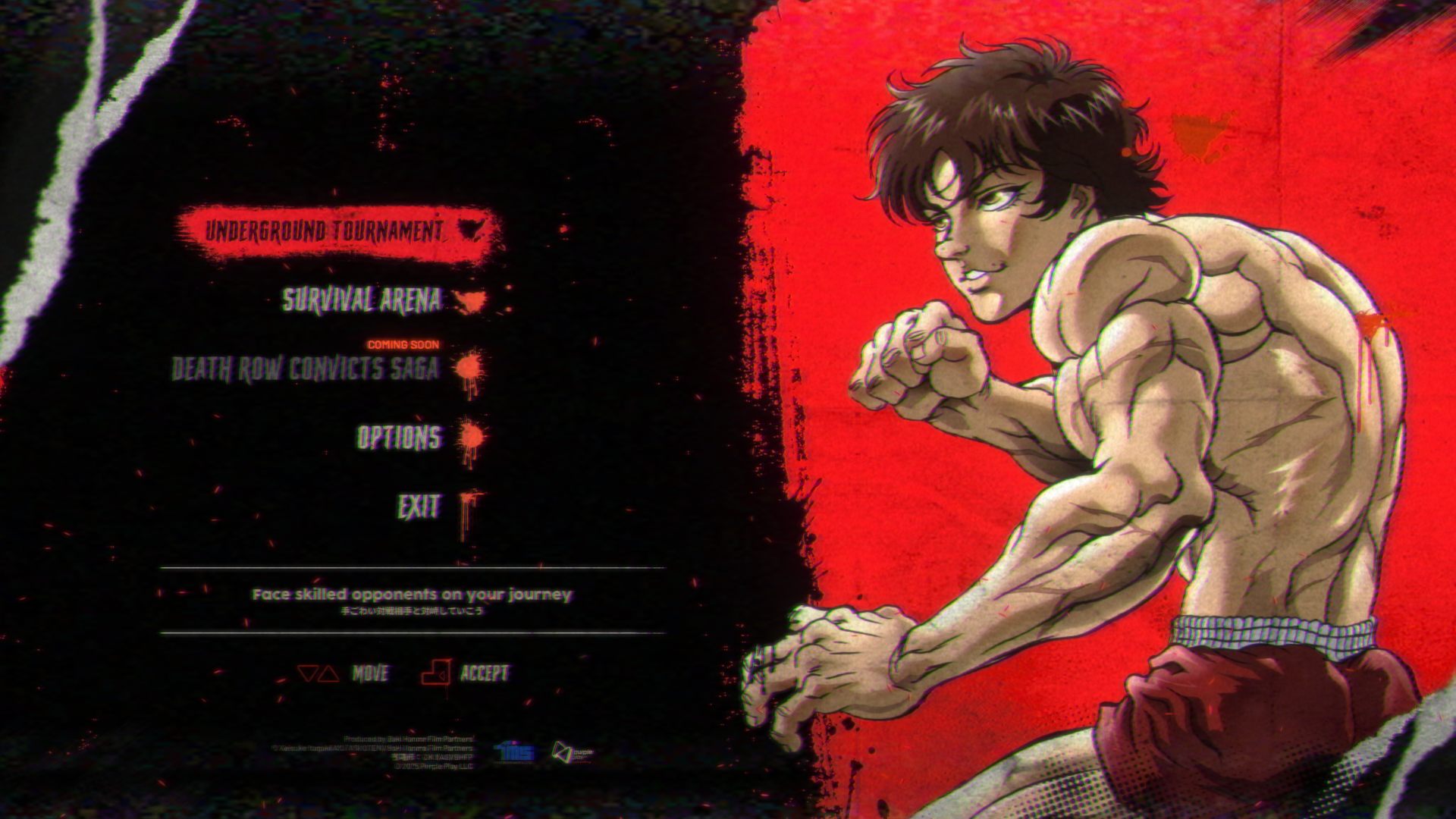 Файтинг по мотивам одноимённого аниме. Играем мы за самого Баки, который хочет доказать, что он круче всех в мире боевых искусств. Геймплей напоминает старый добрый Super Punch-Out!! - нужно вовремя бить и защищаться, никаких сложных комбинаций из десяти кнопок.