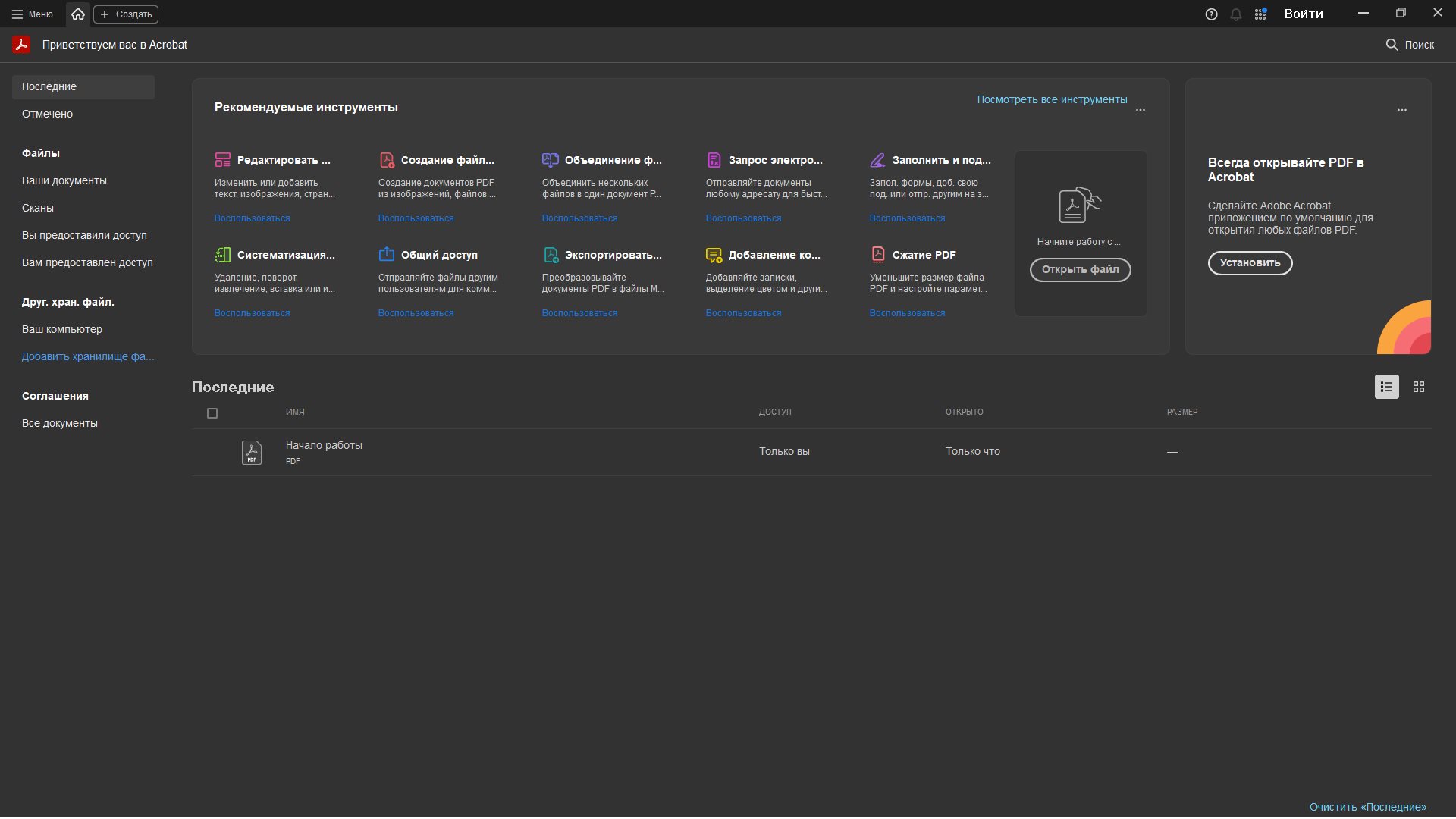 Получайте доступ к инструментам PDF и недавно открытым файлам из офиса, с домашнего компьютера или с мобильного устройства.