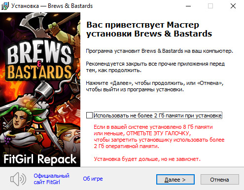 - Для установки репака требуется минимум 2 Гб свободной оперативной памяти (включая виртуальную)