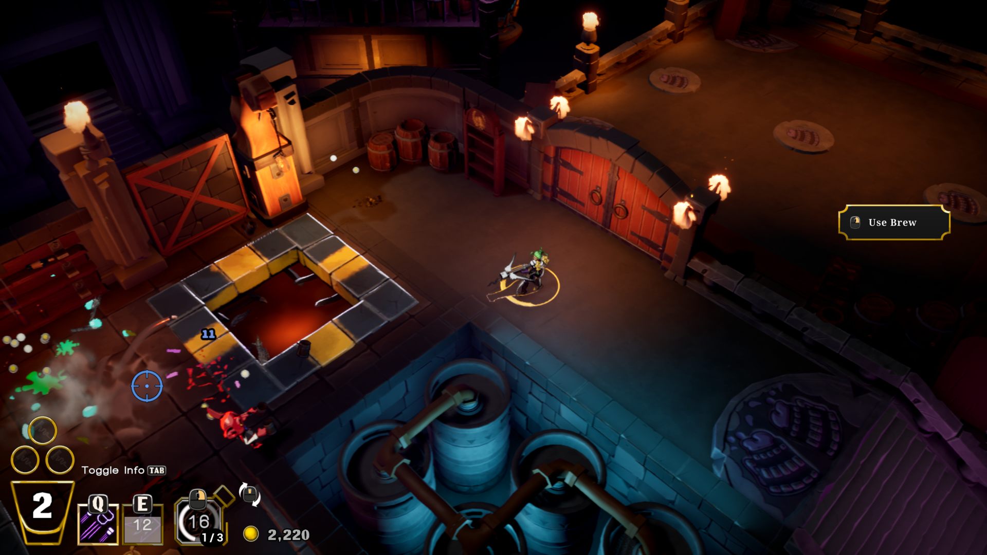 - СПУСТИСЬ: Выбери подвыпившего героя и отправляйся вглубь таверны - в одиночку или вместе с друзьями в кооперативе на 2–4 игроков за одним экраном. Исследуй лабиринты испорченных подвалов, заброшенные винокурни и другие странные, вдохновлённые таверной локации в поисках украденного Камня Варева. Внизу тебя ждут хаотичные комнаты сражений, коварные ловушки и могущественные эликсиры. Каждый забег генерирует новых врагов, предметы и лавки, чтобы испытать твою силу!