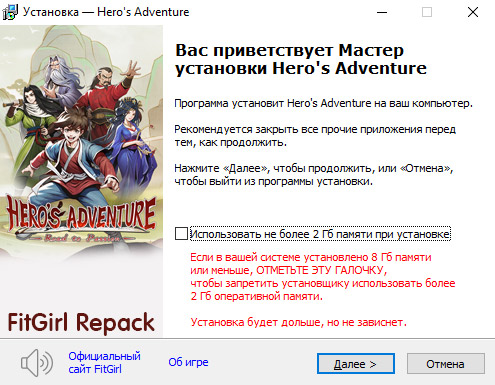 - Репак основан на ISO-образе Heros.Adventure.Road.to.Passion.v1.2.0908b75-TENOKE: tenoke-heros.adventure.road.to.passion.v1.2.0908b75.iso (2,656,352,256 байт)