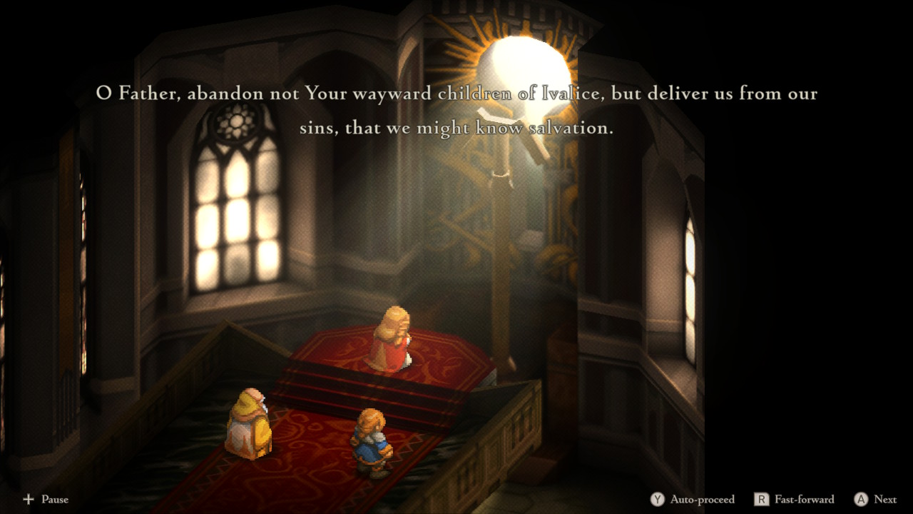 Именно в этот период на сцену выходит Рамза – третий сын Дома Беоульве, одной из ведущих военных династий Ивалиса. Его сопровождает друг детства по имени Делита, простолюдин, выросший среди аристократов. Они пытаются продолжить свой курс через бурную эпоху, но течение истории неумолимо несет их все ближе к бездне.