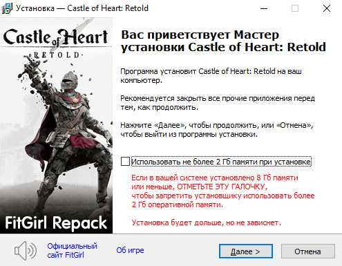 - Для установки репака требуется минимум 2 Гб свободной оперативной памяти (включая виртуальную)