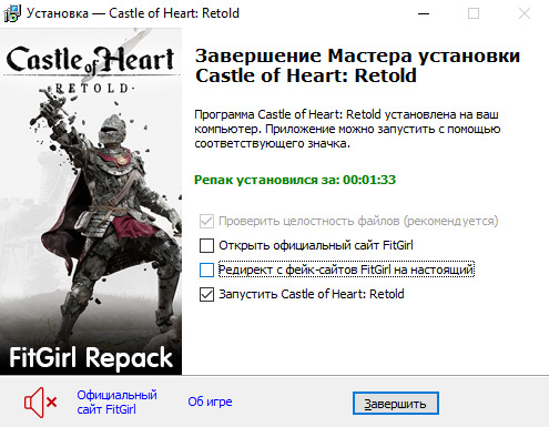 - После установки доступна опция проверки контрольных сумм всех файлов, чтобы убедиться, что репак установился нормально
